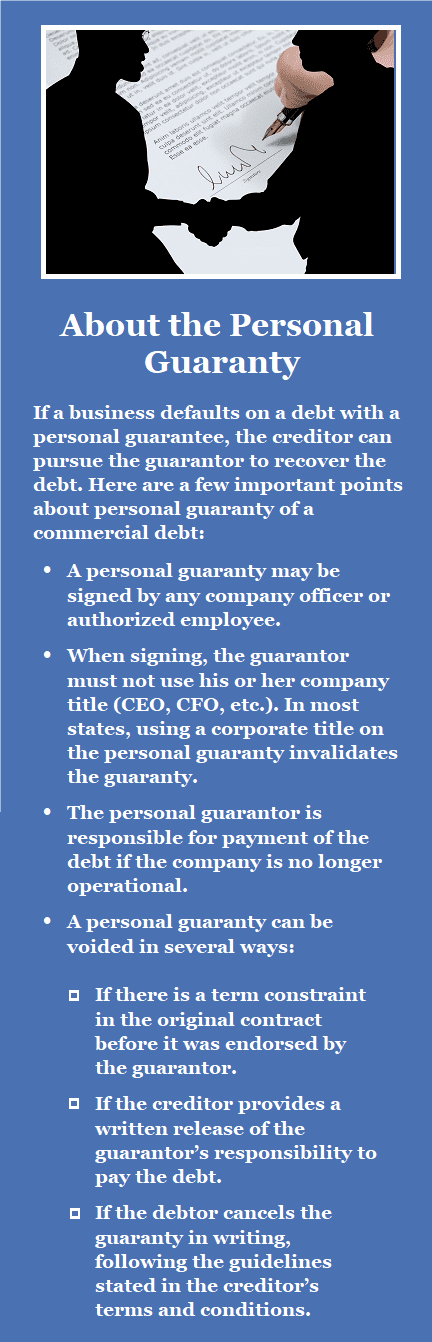 If there is a personal guaranty for the commercial credit, the skip tracer will pursue payment from the individual guarantor, and a demand letter can be sent to that person. (See sidebar, “About the Personal Guaranty.”)